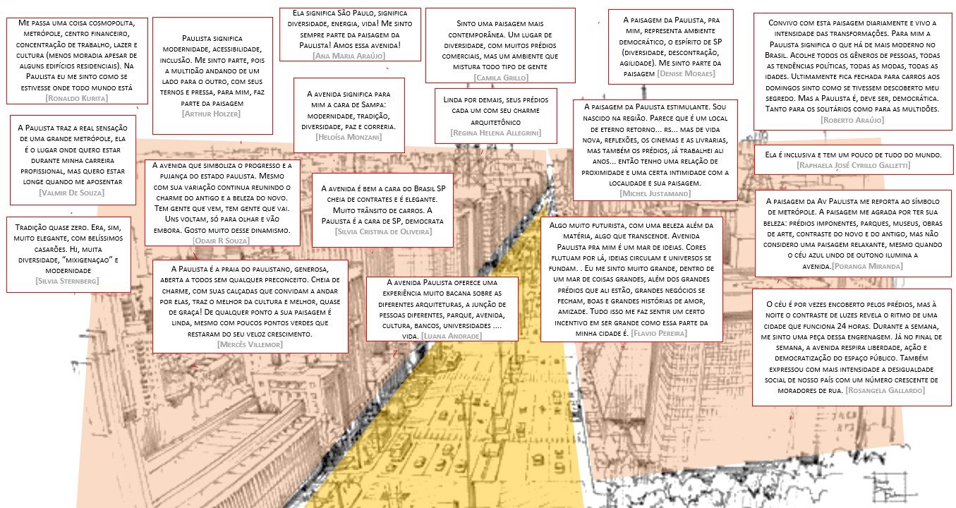 Alguns participantes chegaram a atribuir características como “modernidade” e “tradição” para a Avenida. E teve quem quem afirmasse que sentir parte da paisagem.